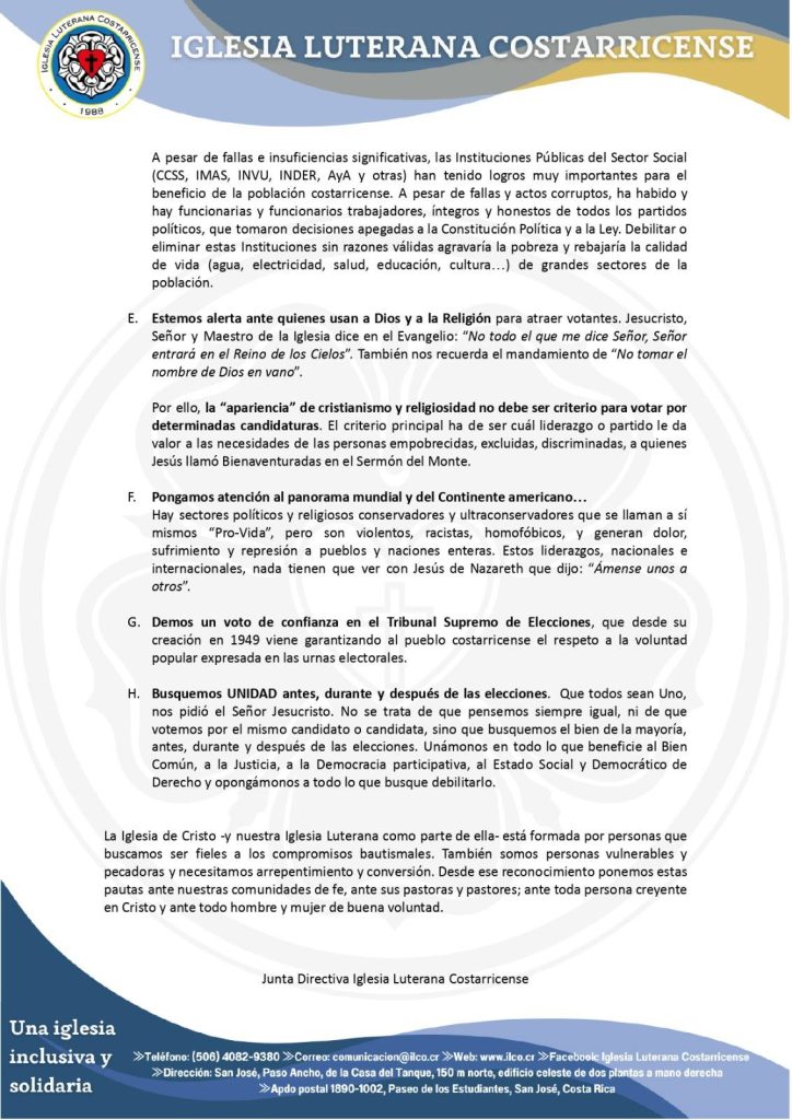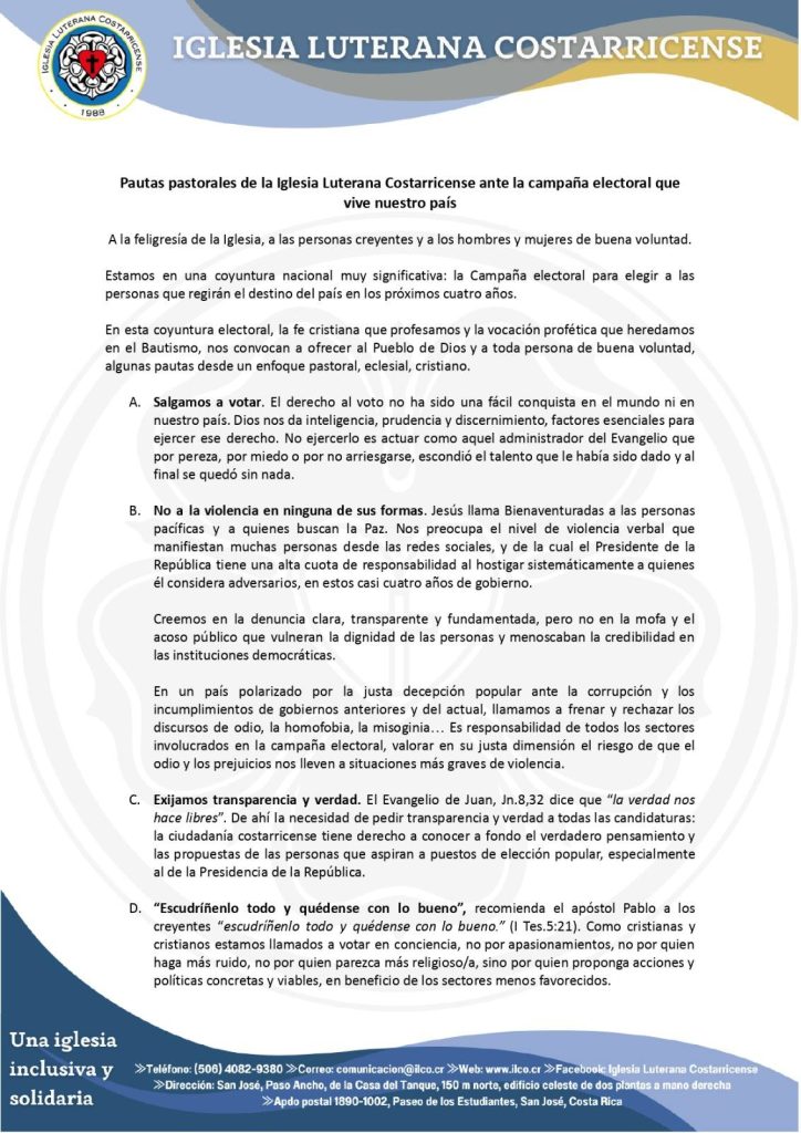 La Iglesia Luterana Costarricense fue testigo de honor del Pacto Nacional por la Educación Pública de Costa Rica